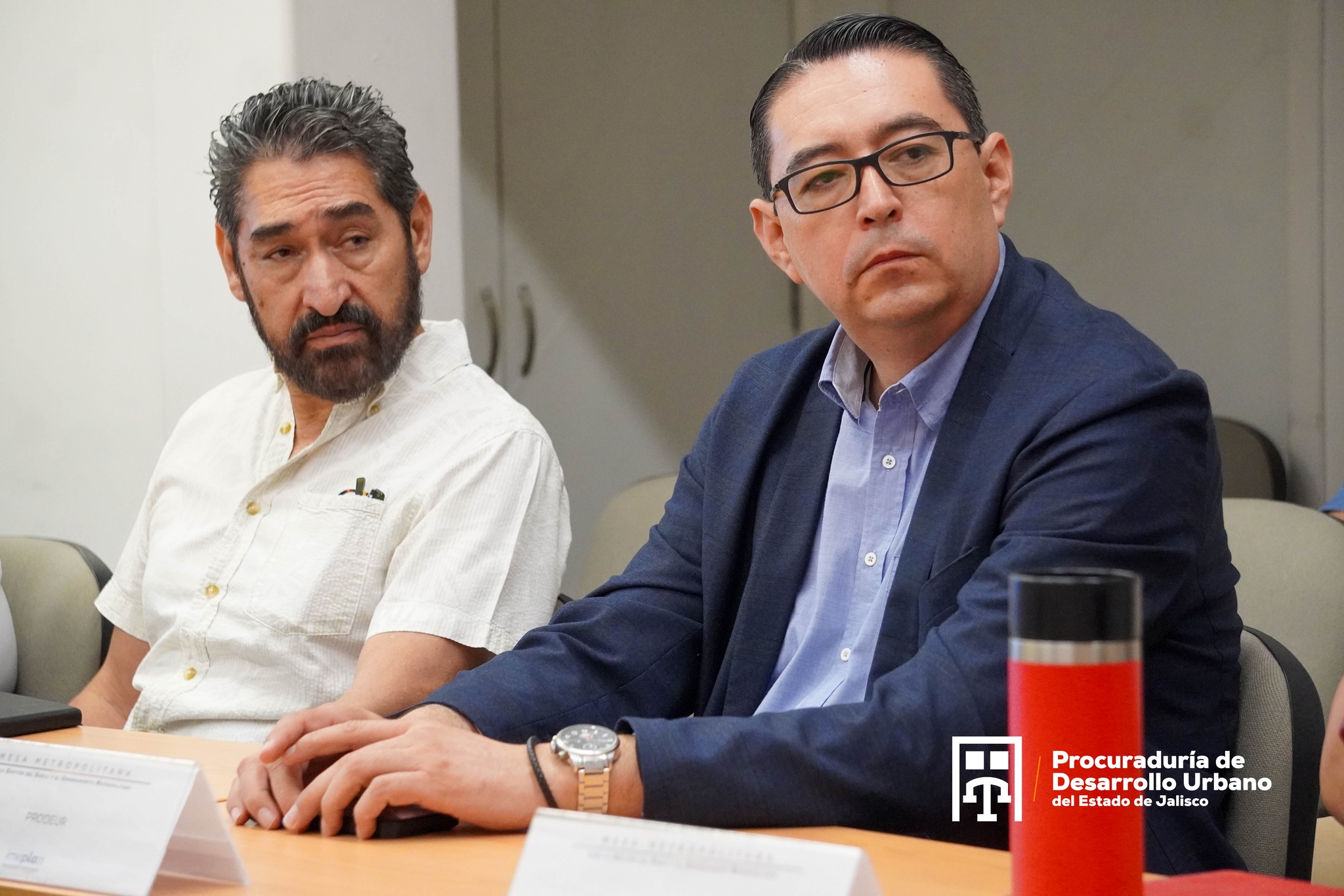 El Procurador de Desarrollo Urbano del Estado de Jalisco, Dr. Noé Saúl Ramos García, y el Director de Estudios Técnicos, Ing. Alejandro Rafael Covarrubias Mendoza, participaron en la Sesión de la Mesa Metropolitana de Gestión del Suelo y Ordenamiento Metropolitano, convocada por Imeplan.